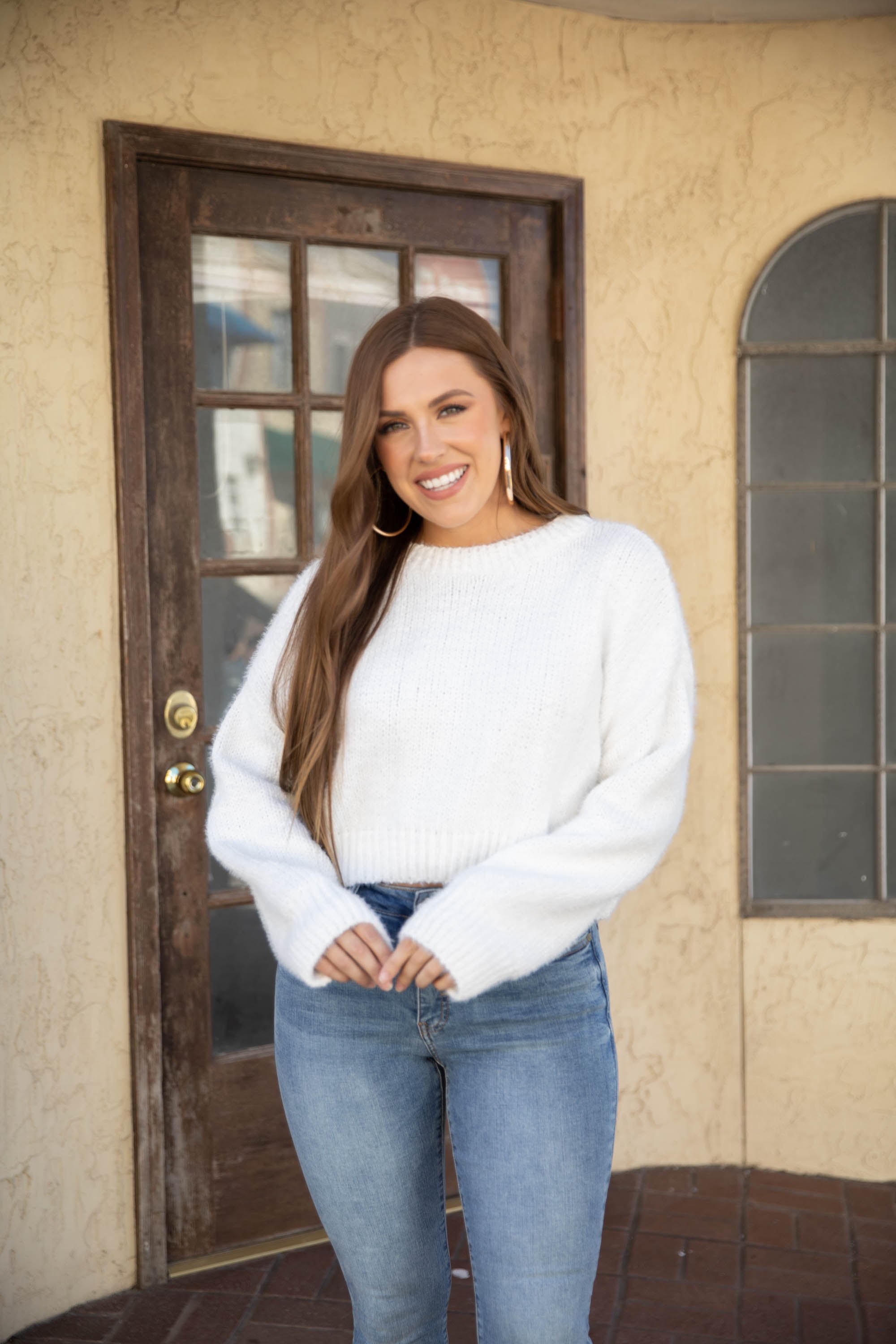 This soft and cozy sweater is an absolute must have for the season! It features a crew neckline, long sleeves, the softest material, and a cropped fit.