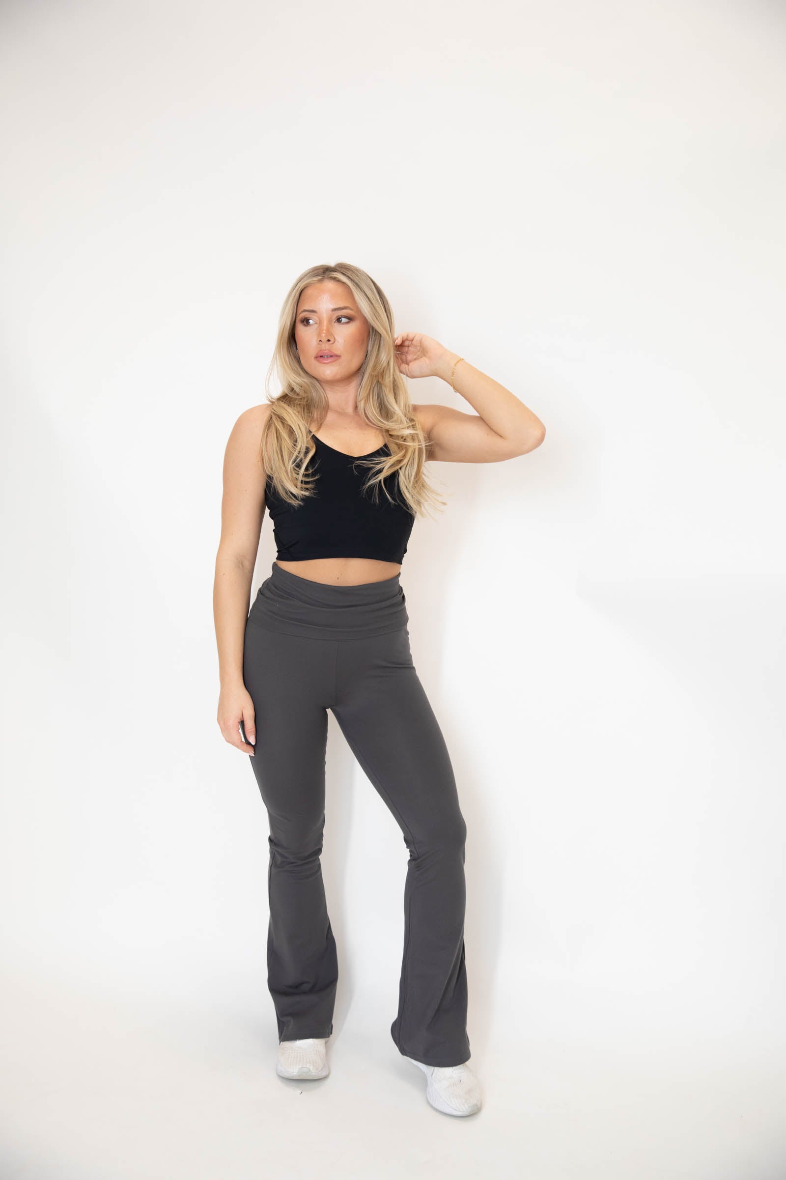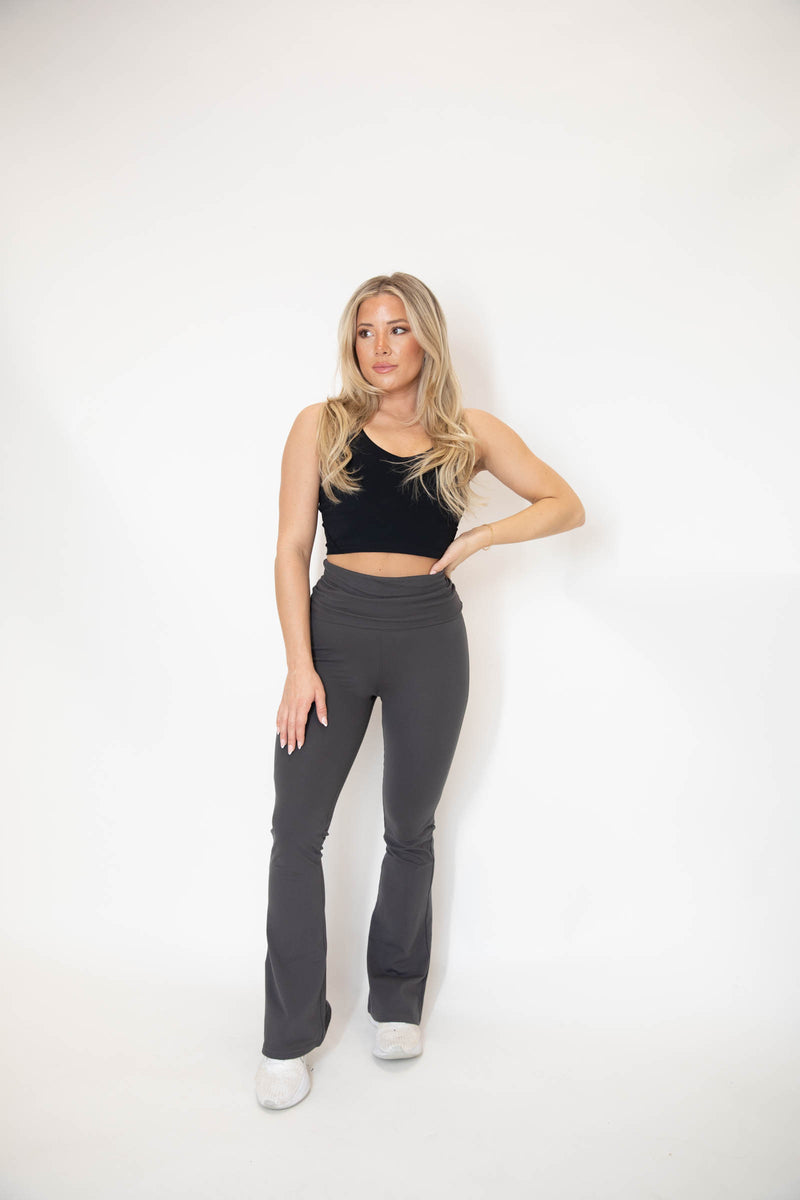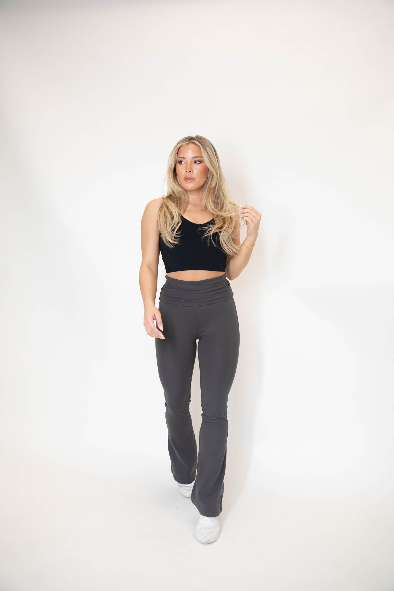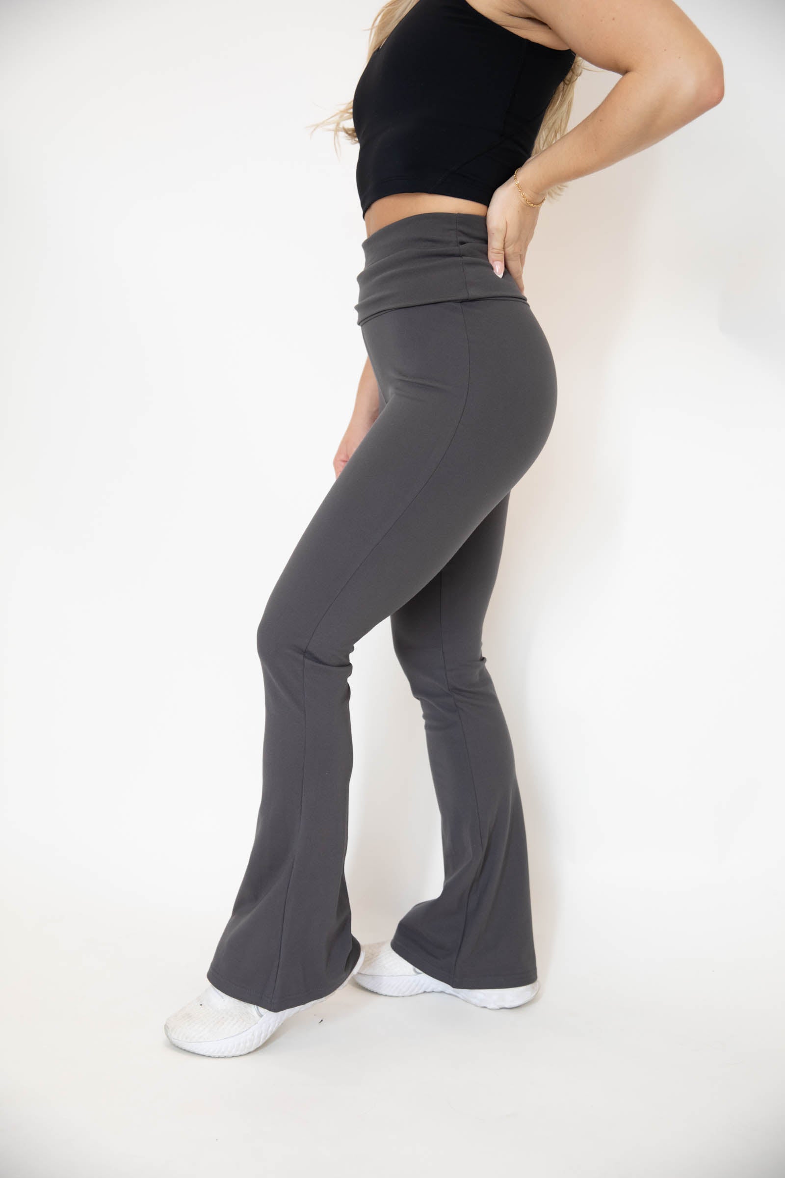 These Butter Foldover Flare Leggings are designed with comfort in mind. Made from super soft fabric, they feature a fold over waist for a snug fit and flared leggings that flatter your figure. Perfect for yoga, running or lounging.