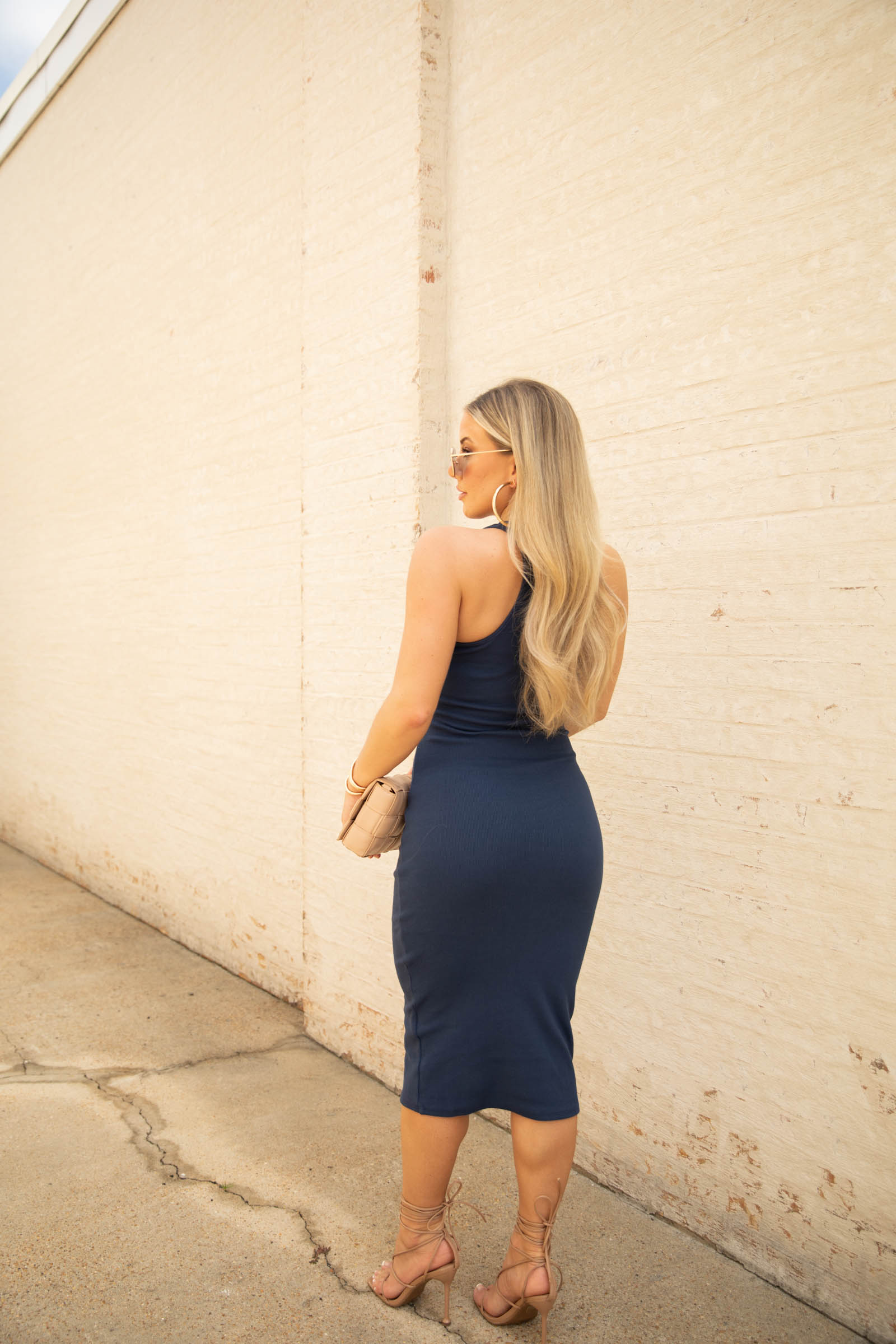 Flaunt your figure in the Still Holding On Dress. Crafted with a fitted, bodycon silhouette, this midi dress flatters your shape and features a unique mid-section detail for a modern touch. Dress it up or down to create a variety of looks.