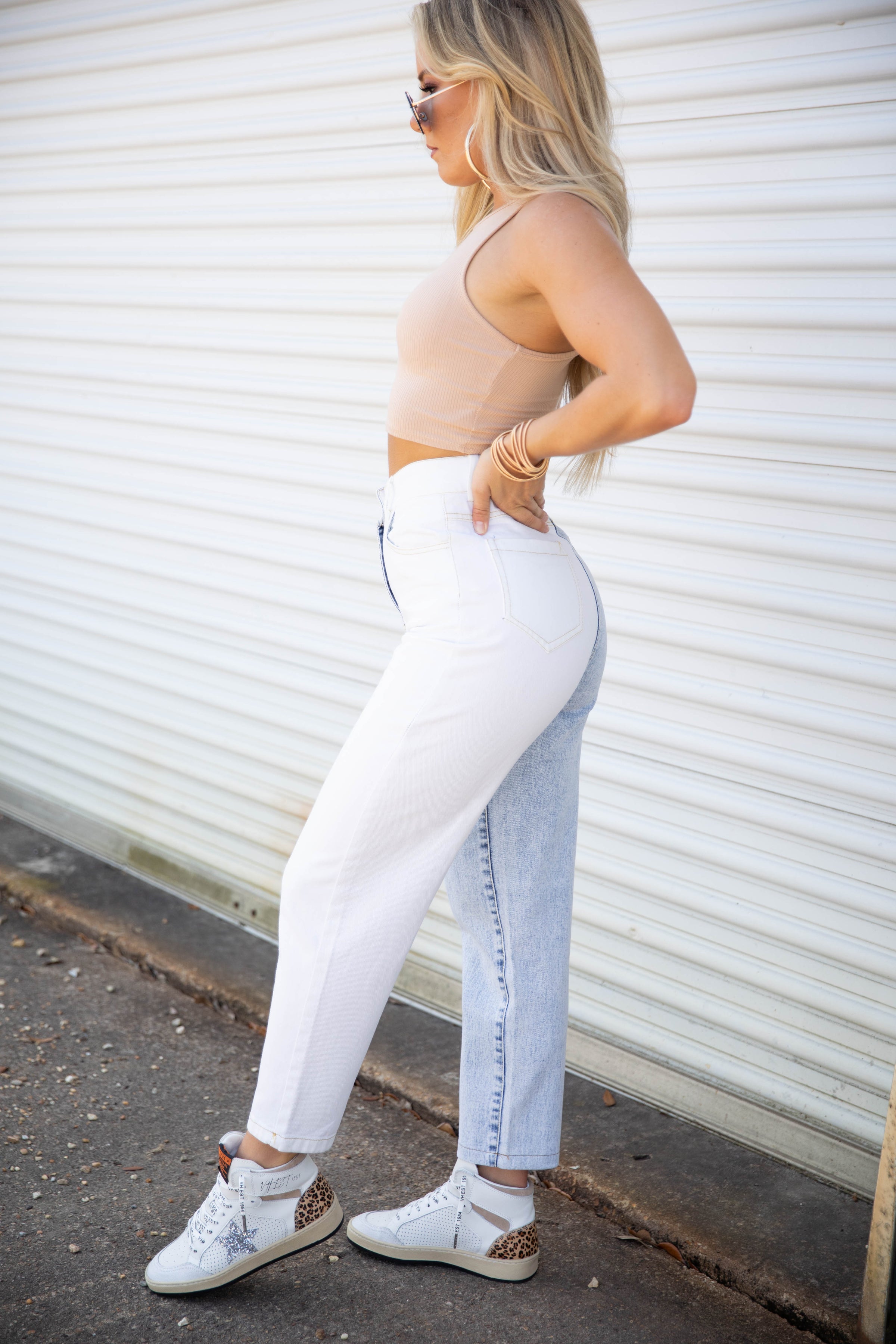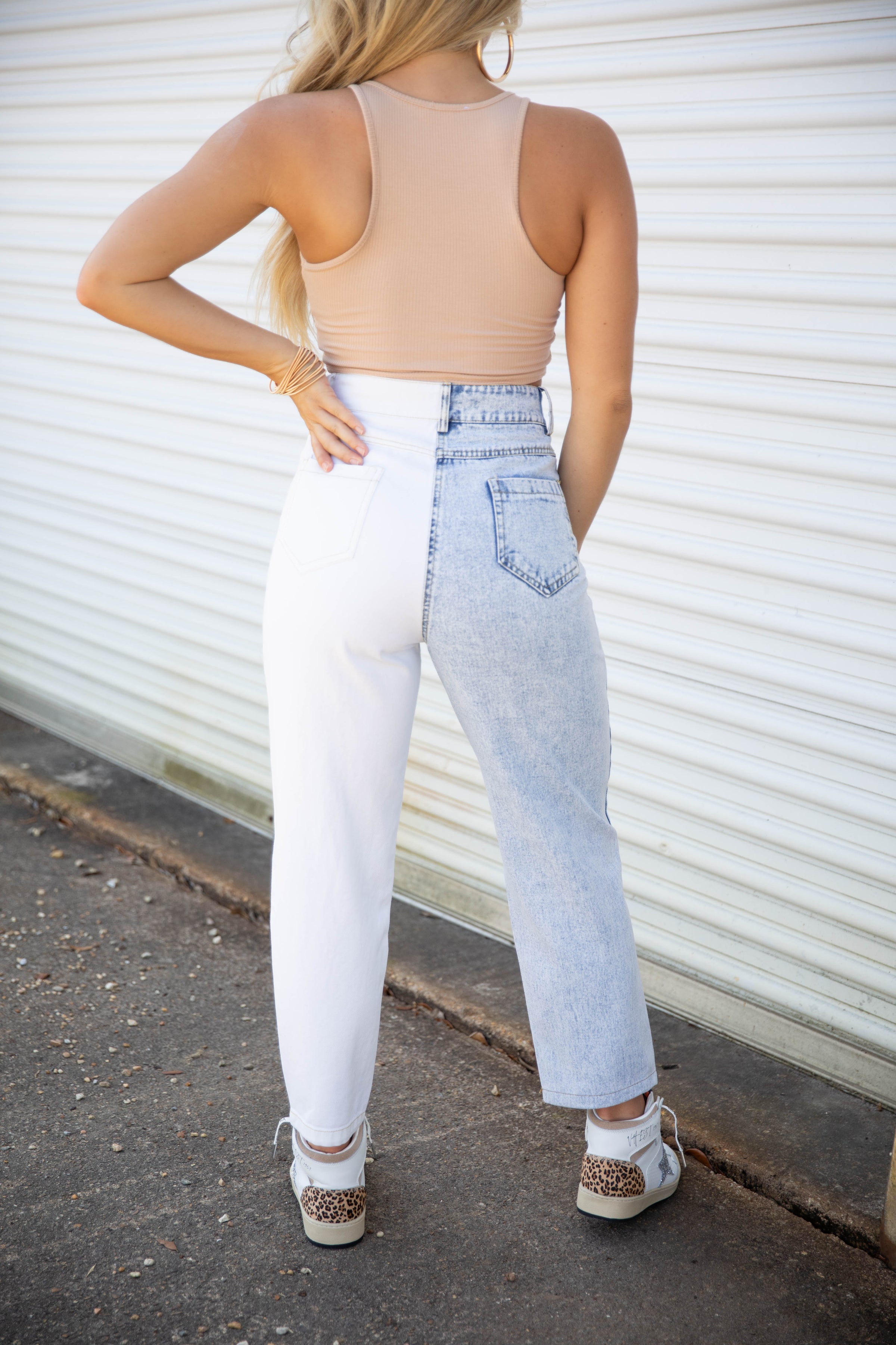 Don't be two-faced, but you can def wear our two-faced denims! How adorable are these two toned jeans!
